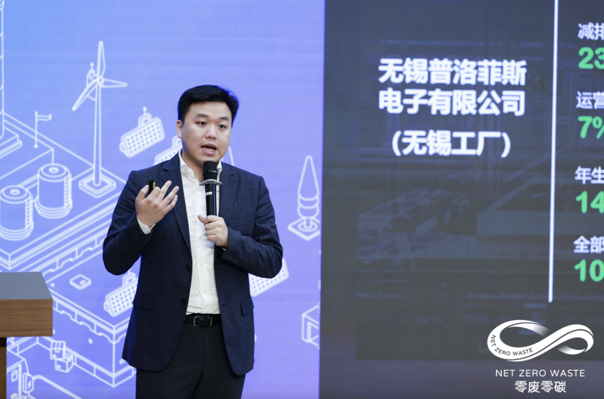 施耐德电气综能微网业务负责人黄弘扬展示了公司在智能制造与能源管理的创新实践。施耐德电气供应链通过践行"5R循环经济模式"实现废弃物零填埋;同时,通过AI赋能的能源管理、微电网、智慧楼宇等技术,在多家工厂提升绿色能源消纳,提升能效,获得经济受益的同时达成零碳目标。此外,施耐德电气打造的"绿色能源管理和绿色智能制造解决方案"已赋能各行业多场景客户加速零碳达成,例如该方案助力某光伏龙头企业实现了单位能耗降低12%。