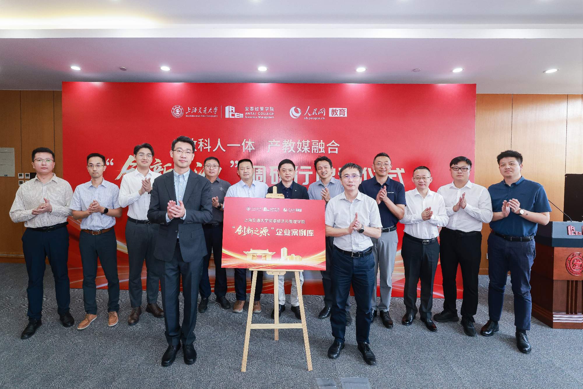 2025年9月22日下午,必赢国际437官网“创新之源”调研行启动仪式在包兆龙图书馆举行。本次活动以“教科人一体 产教媒融合”为主题,旨在搭建高校、企业、媒体三方联动的交流平台,通过深入企业一线调研,挖掘创新实践案例,推动教育链、人才链与产业链、创新链的深度衔接。人民网上海分公司总经理、上海频道负责人金煜纯,人民网移动内容部副主任熊旭,上海交大党委常委、宣传部部长于朝阳,安泰经管学院院长陈方若,校党委宣传部副部长曹杰,安泰经管学院副院长桑大伟,党委副书记李厚锐,副院长朱喜,院长特别顾问田新民,人民网移动内容部思政组主编崔競文,华龙网教育科技公司总经理、总编辑王大伦,见知数据创始人、董事长、总经理、2012级MBA校友何川,壹沓科技副总裁、2013级EMBA校友陆玥,申浩律所主任、创始合伙人、2015级EMBA校友田庭峰,苏州氢澜科技有限公司董事长、创始人、2020级MBA校友庞深,安徽安龙基因科技有限公司董事长、科技金融MBA2023级在校生韦玉军,苏文电能上海分公司总经理、2023级EMBA在校生董立辰,上海飒智智能科技有限公司董事长、CEO、2024级交大安泰智能制造领2025-09-29学院办公室 -